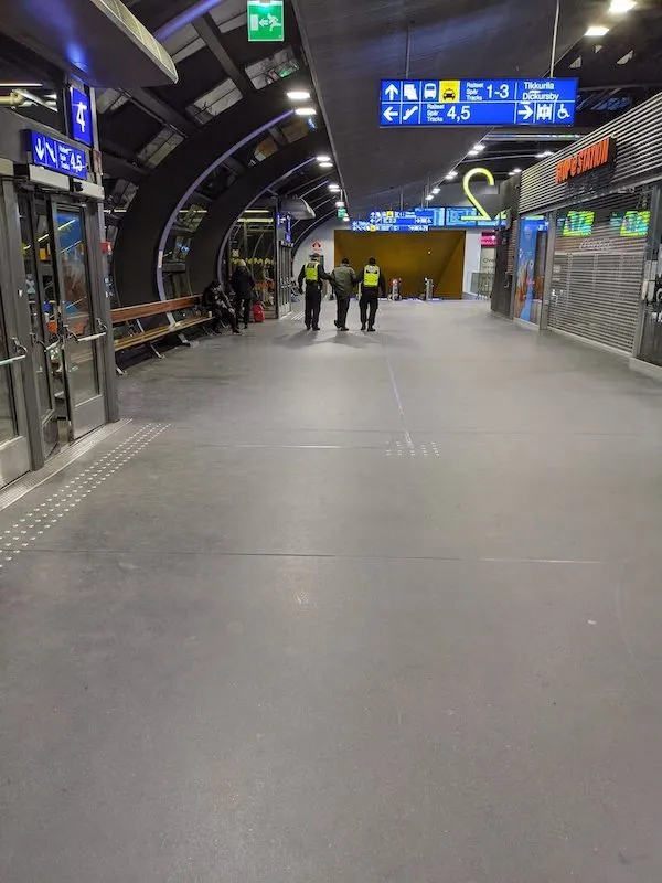 由於前往 Rovaniemi 的火車需要在 Tikkurila 搭乘,從機場接駁到 Tikkurila 是一段很短的車程。在車站等待半夜 12 點搭車的短歇,很快地,我們就迎來預料之外的小插曲。